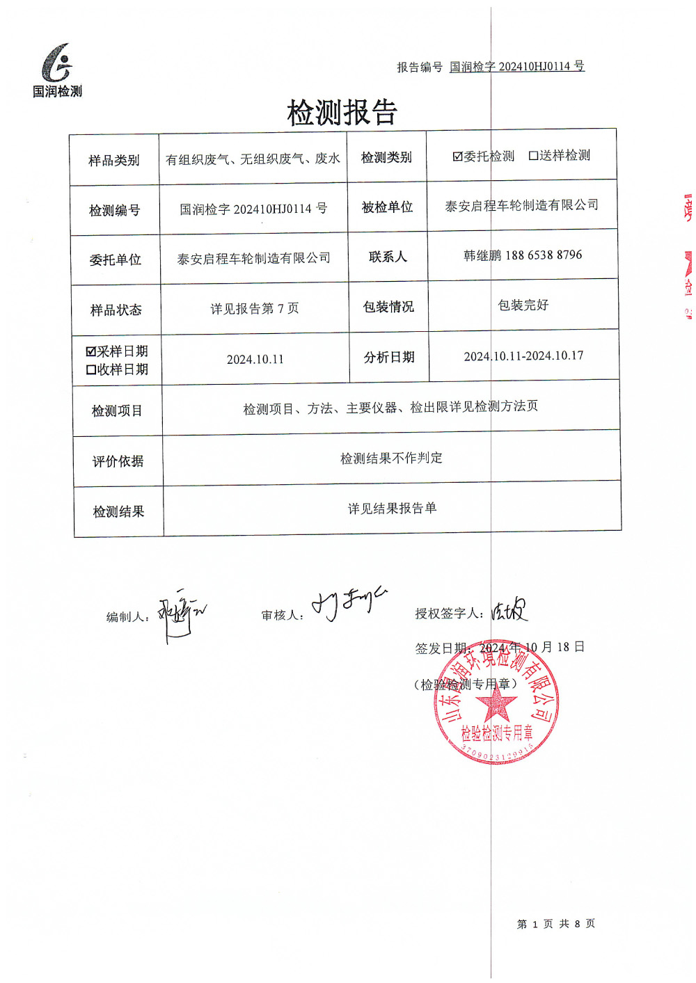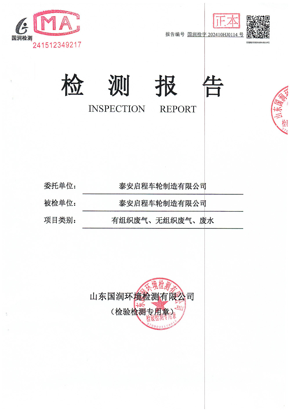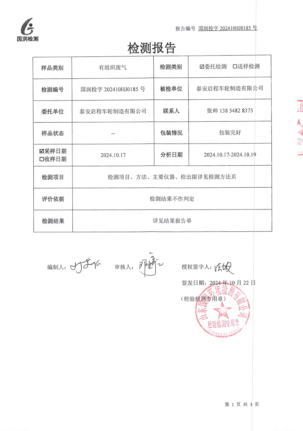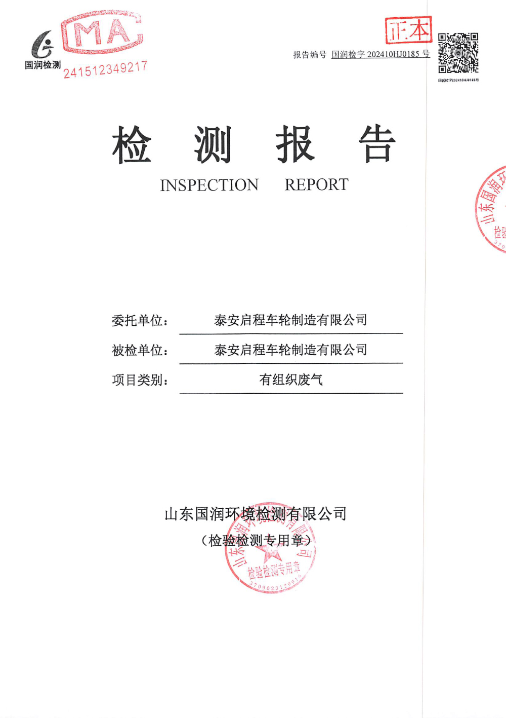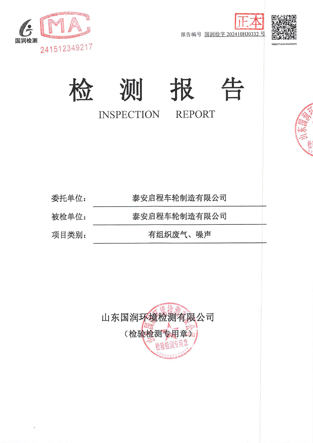 泰安啟程車輪制造有限公司2024年10月份環(huán)境污染物排放檢測(cè)報(bào)告