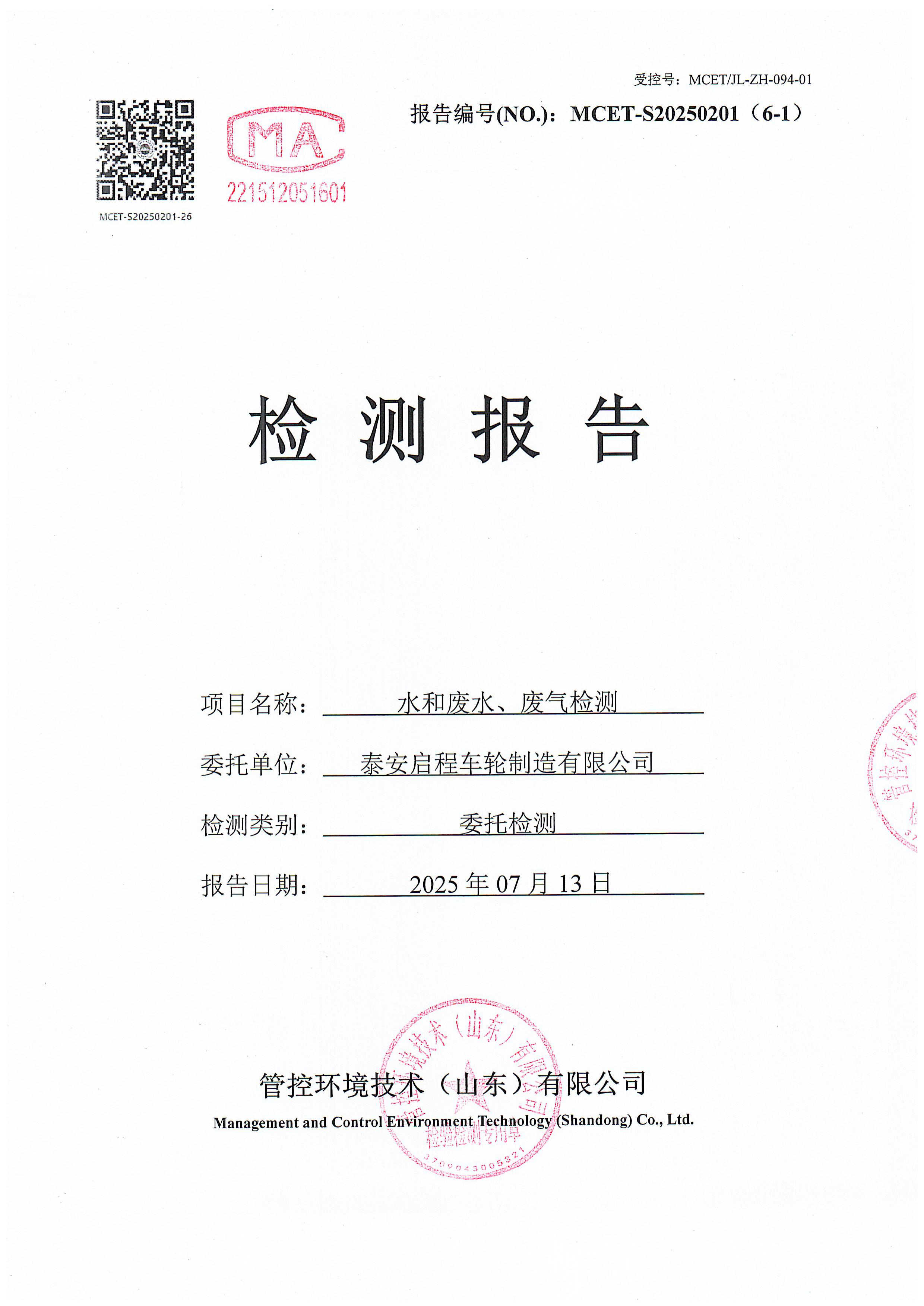 泰安啟程車輪制造有限公司2025年7月份環(huán)境污染物排放檢測(cè)報(bào)告