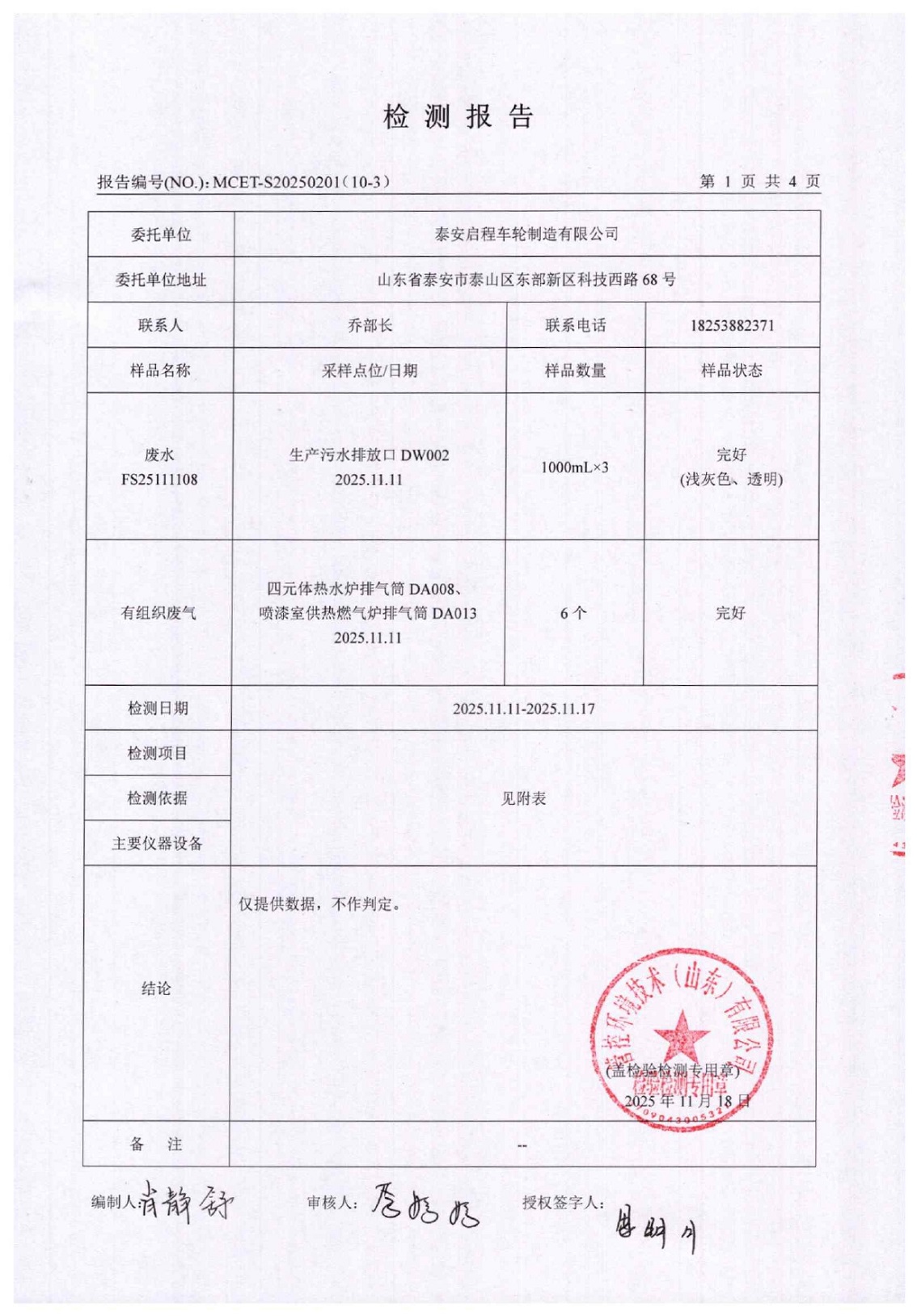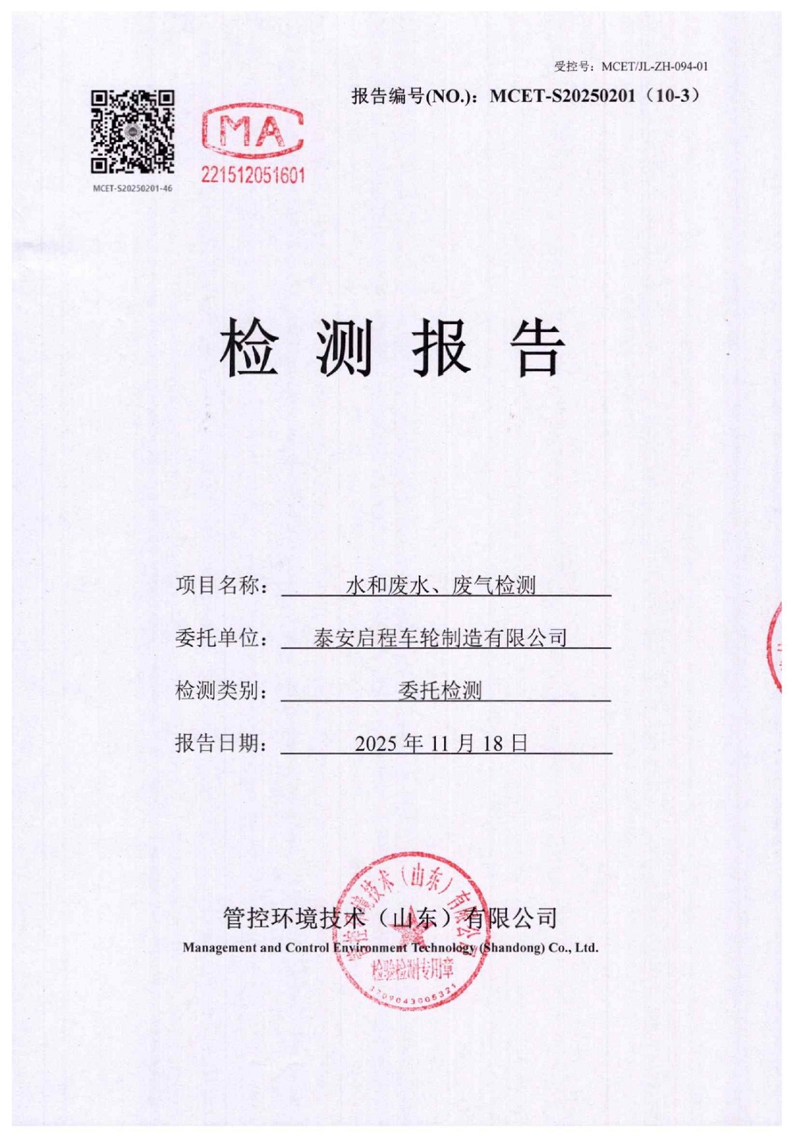 泰安啟程車輪制造有限公司2025年11月份環(huán)境污染物排放檢測(cè)報(bào)告