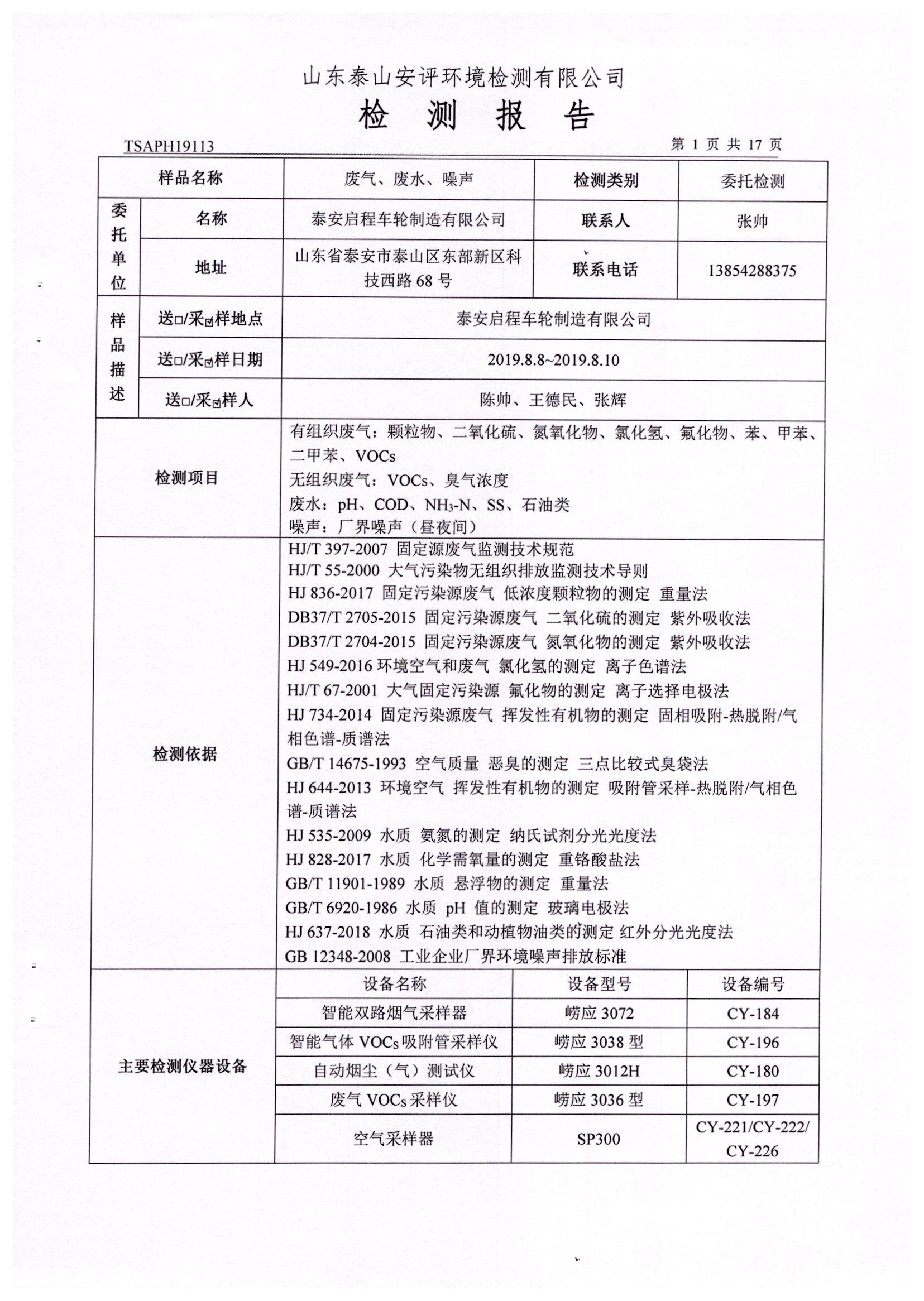 根據(jù)《中華人民共和國環(huán)境保護法》、《企事業(yè)單位環(huán)境信息公開辦法》有關(guān)規(guī)定,現(xiàn)將泰安啟程車輪制造有限公司環(huán)境信息公開如下: