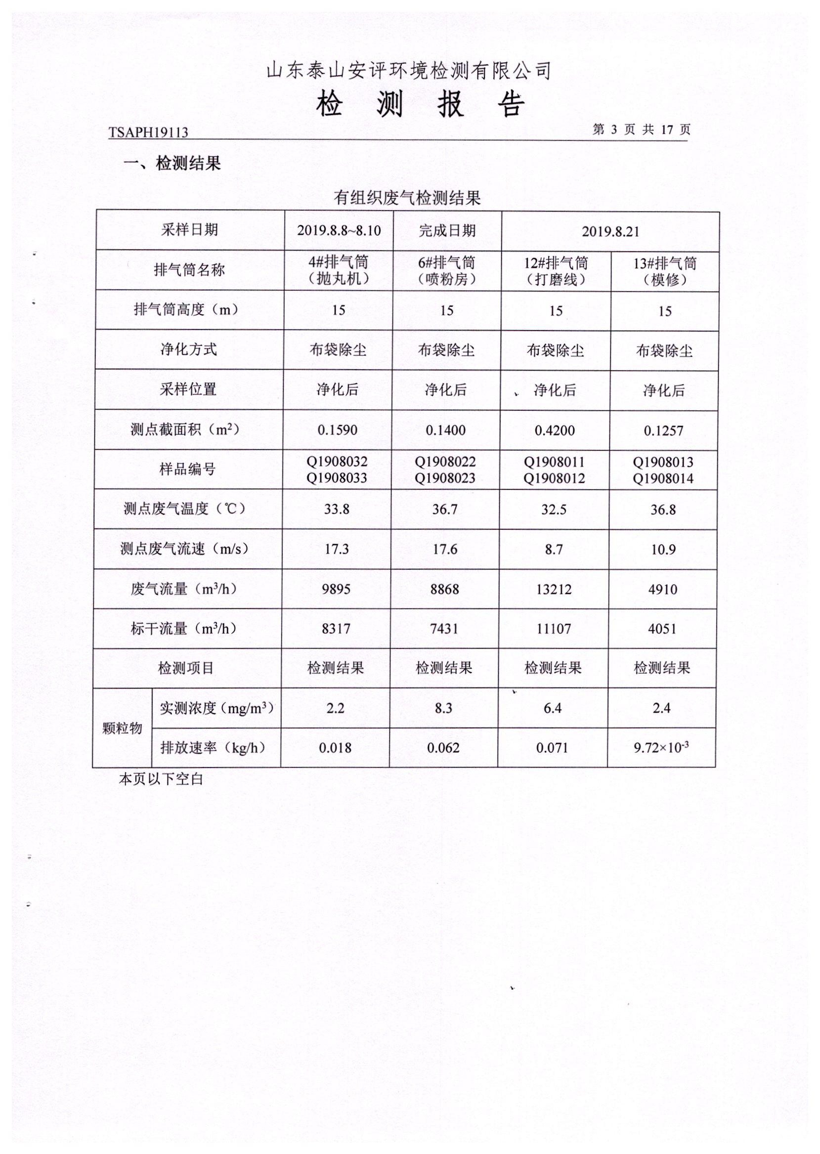 啟程公司配套污染防治設(shè)施有:熔煉爐噴淋塔除塵裝置,熔煉鋁灰冷卻收集裝置,拋丸機布袋除塵器,打磨噴淋除塵設(shè)施,噴粉除塵收集裝置,水幕除漆裝置+有機廢氣生物降解凈化設(shè)備,建設(shè)有20t/d污水處理系統(tǒng),各防護設(shè)施全部運行正常。