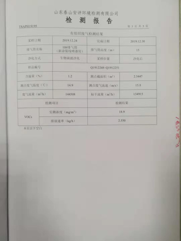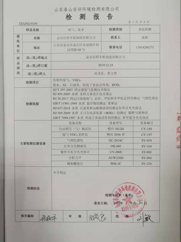 泰安啟程車輪制造有限公司2019年12月份檢測報告