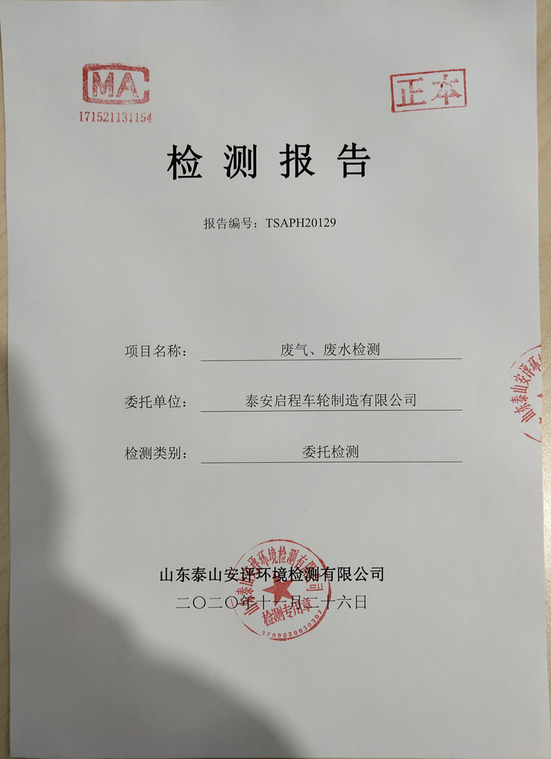 泰安啟程車輪制造有限公司2020年11月份環(huán)境污染物排放檢測報(bào)告