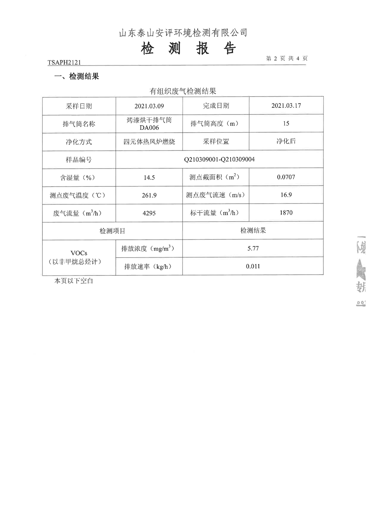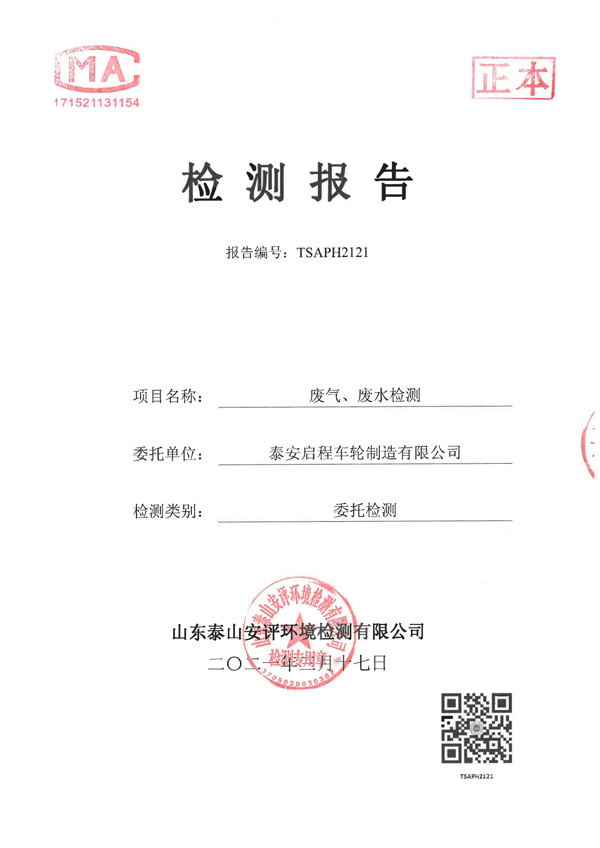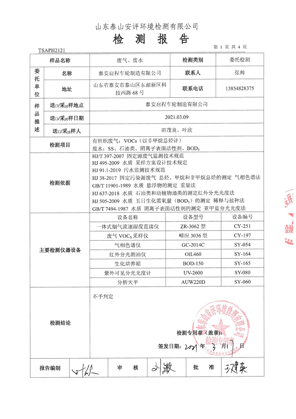 泰安啟程車輪制造有限公司2021年3月份環(huán)境污染物排放檢測(cè)報(bào)告