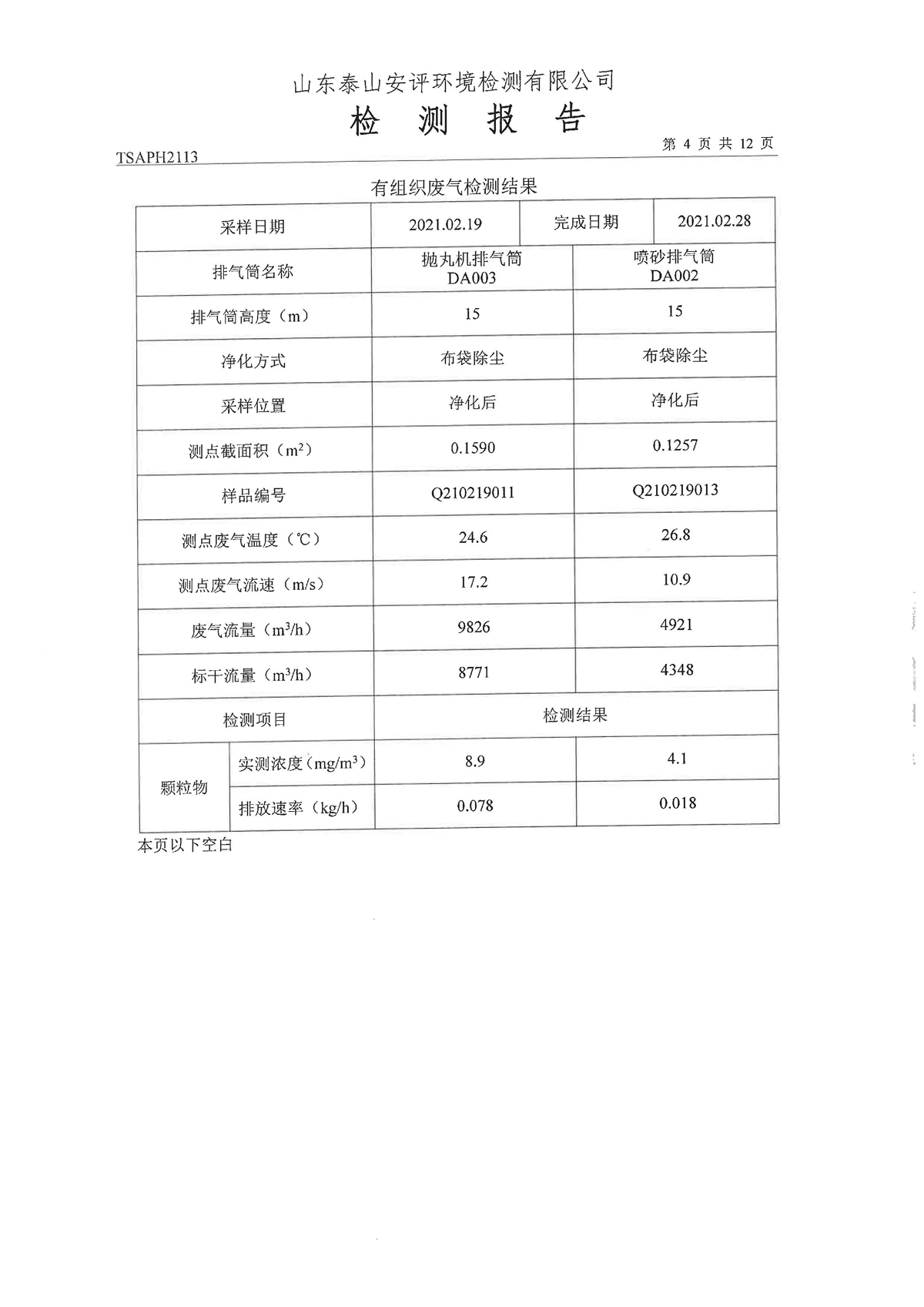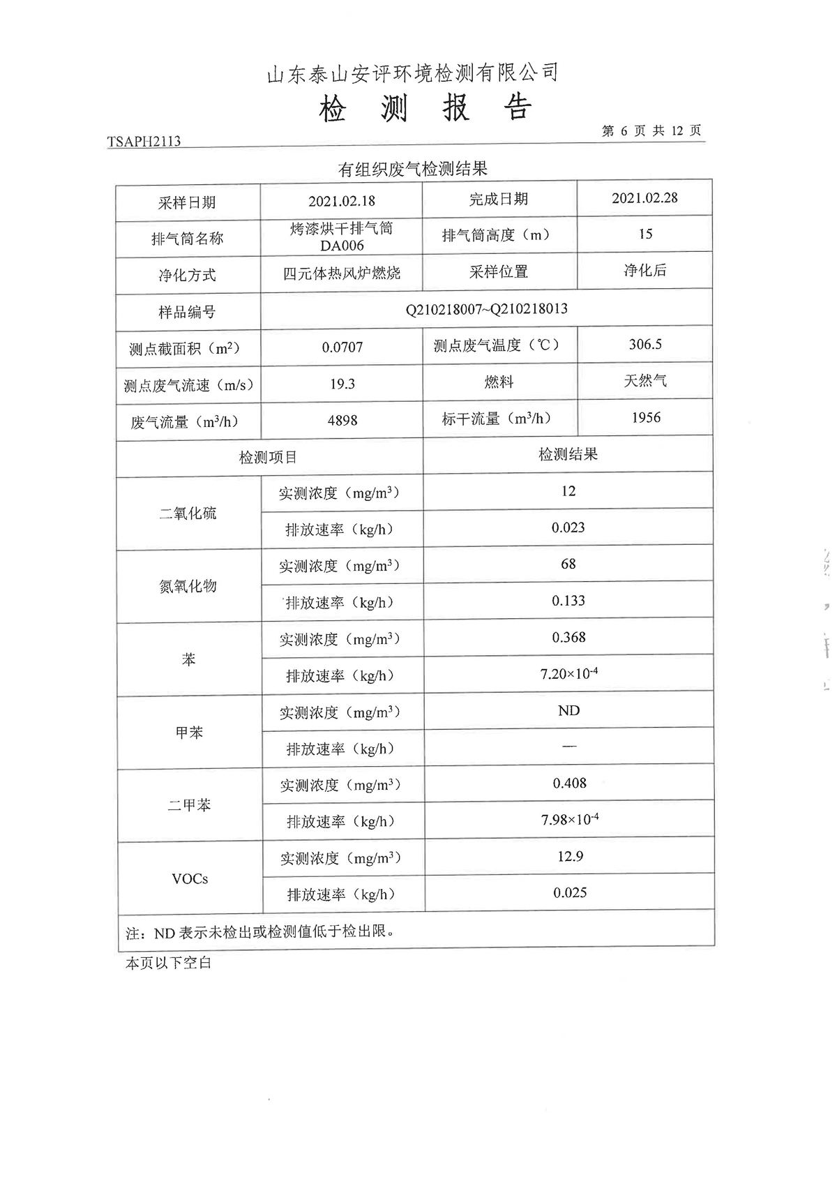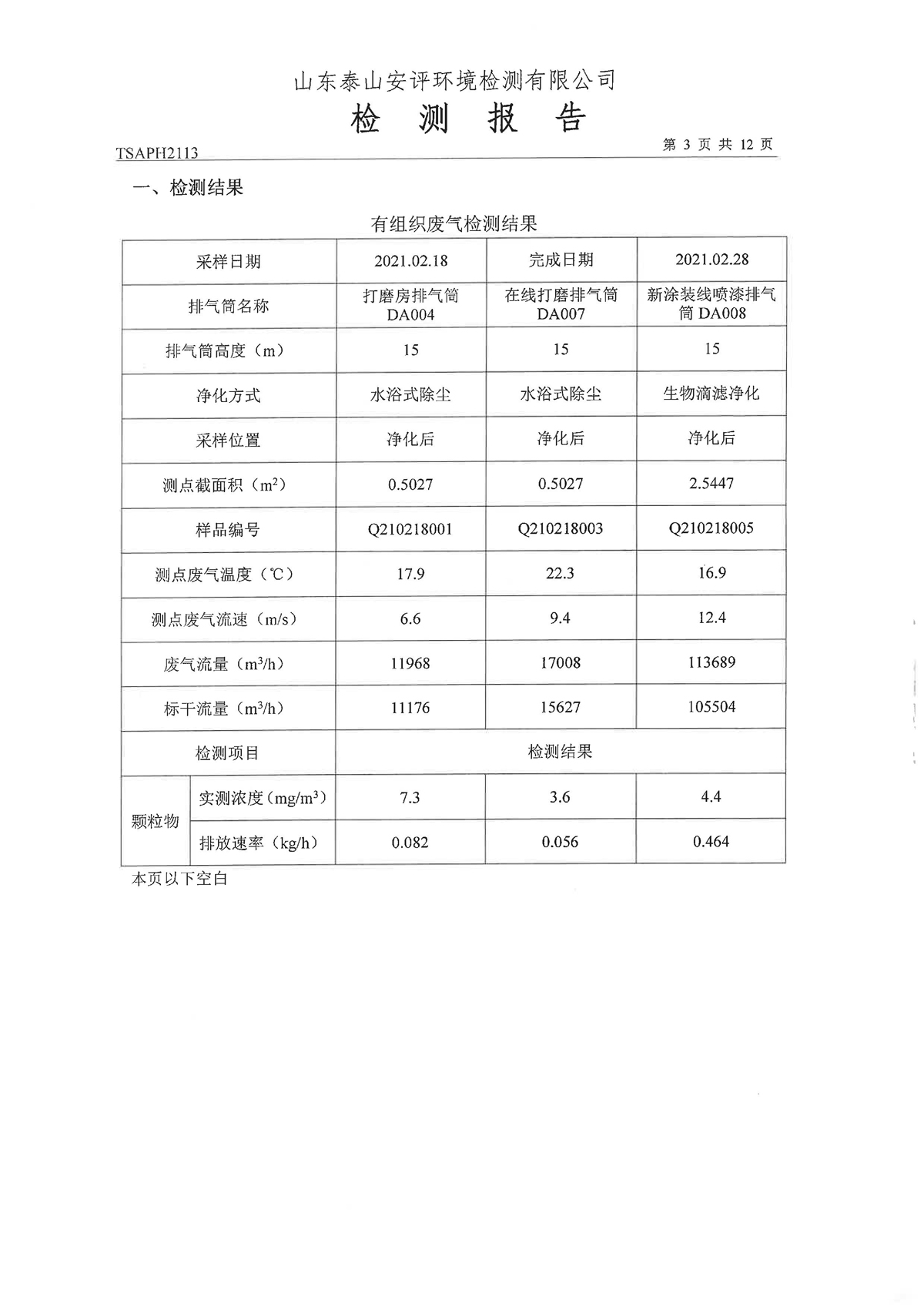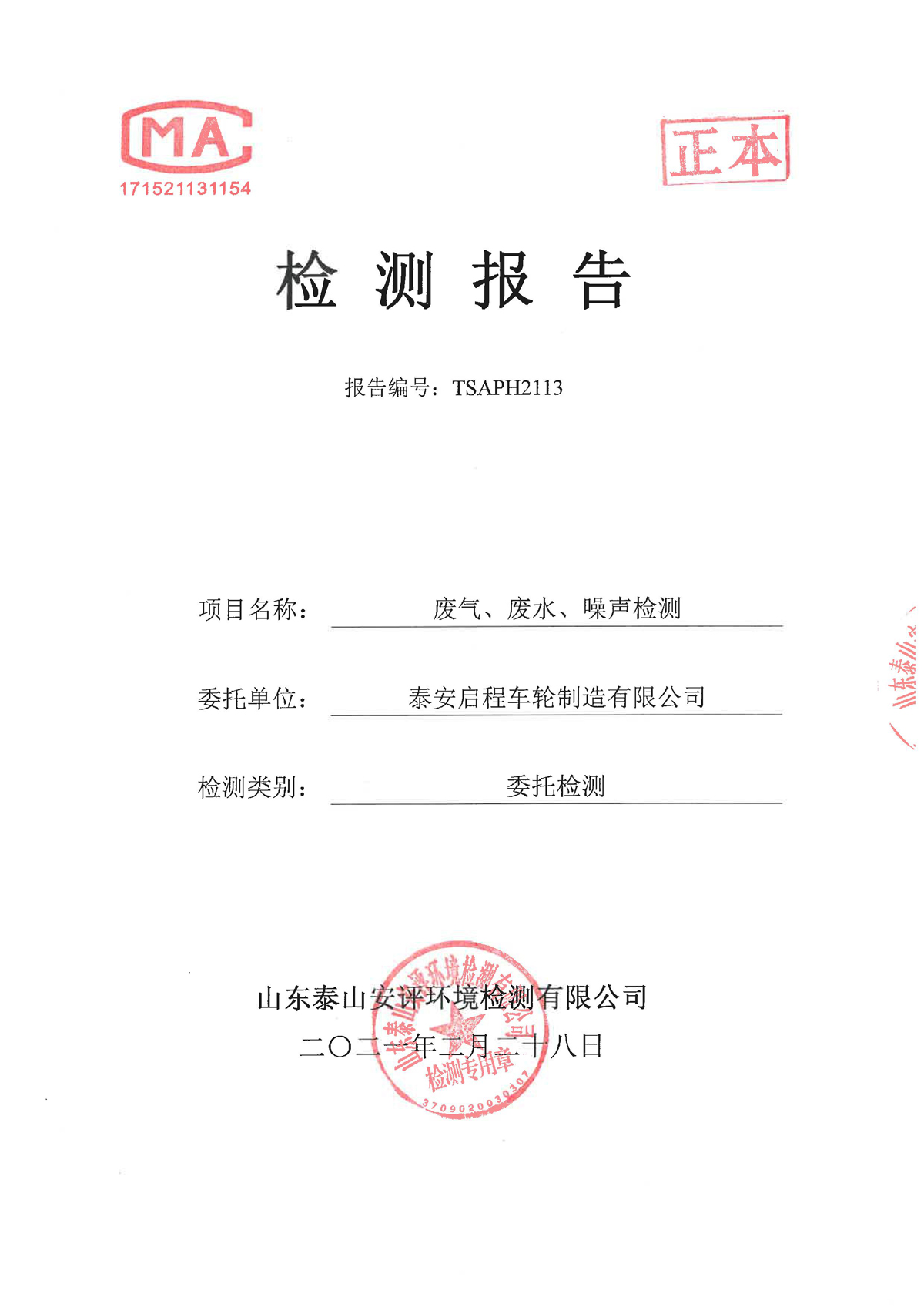 泰安啟程車輪制造有限公司2021年2月份環(huán)境污染物排放檢測報告