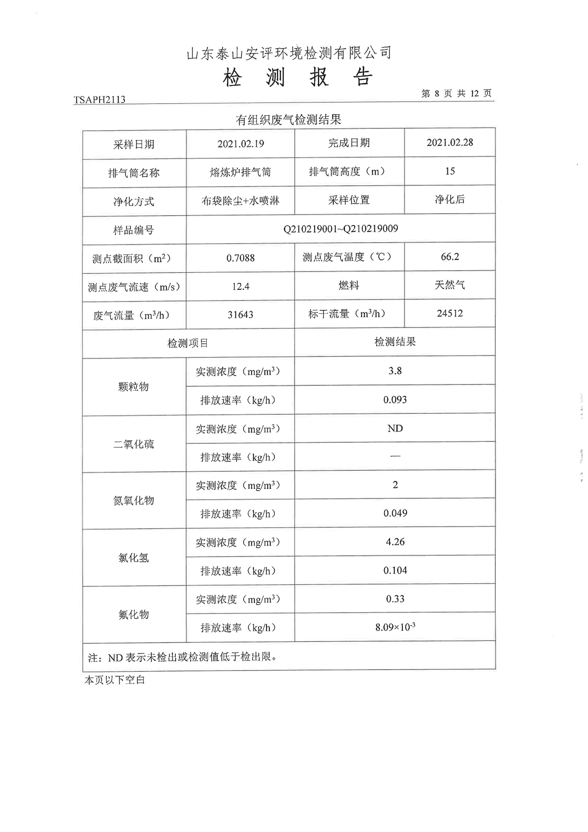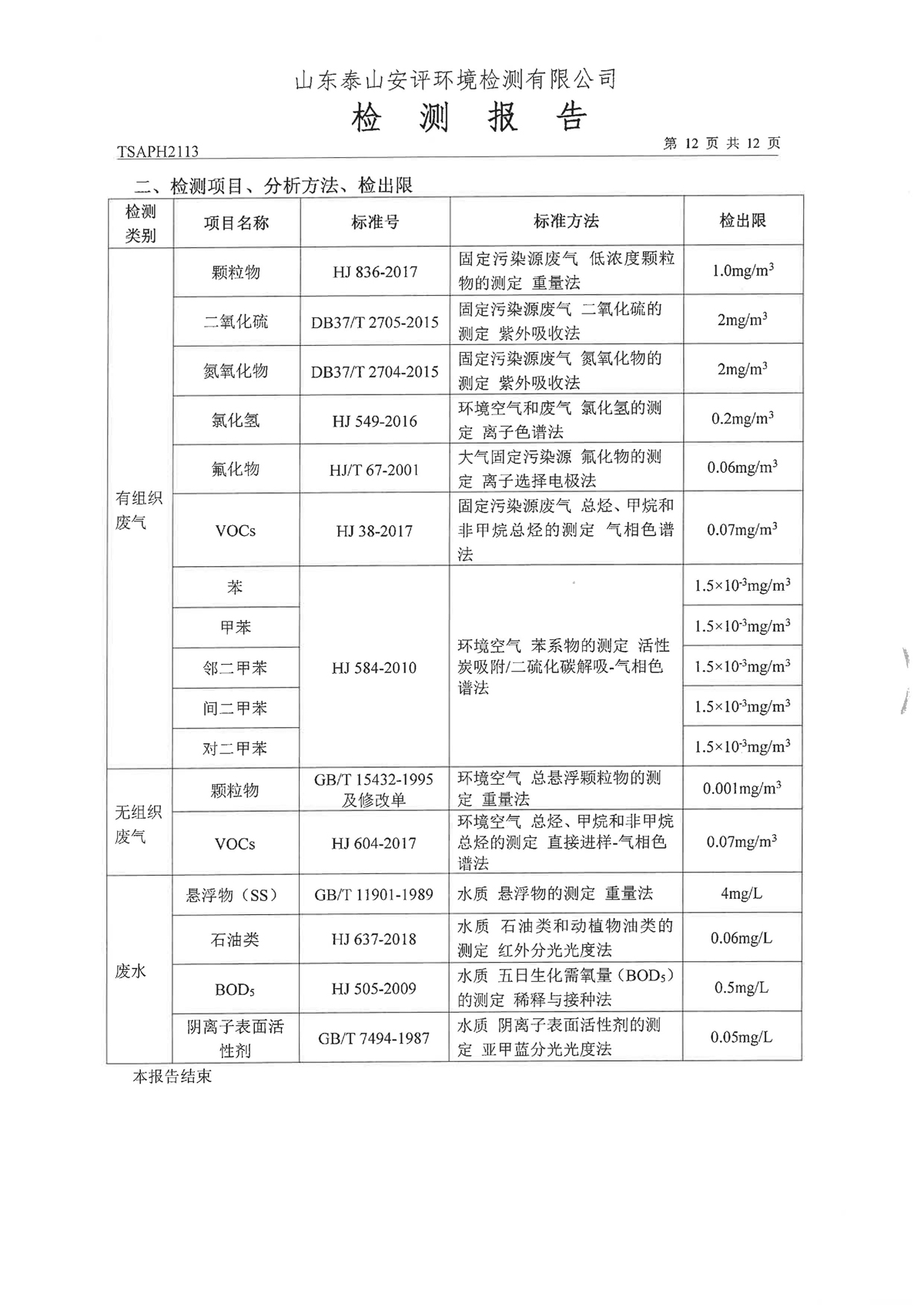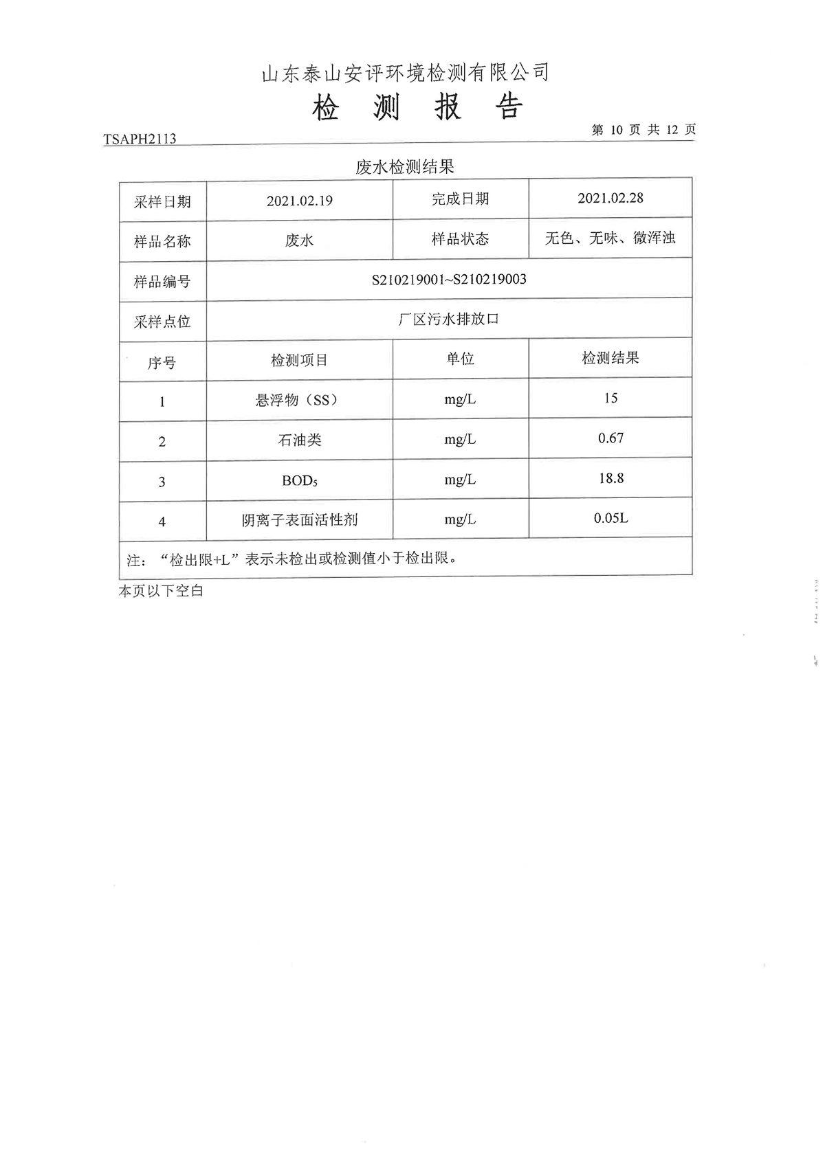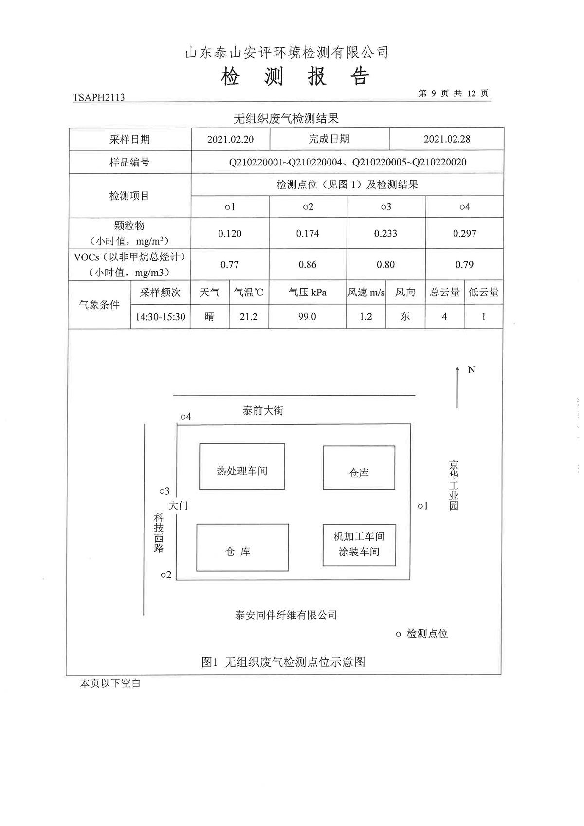 泰安啟程車輪制造有限公司2021年2月份環(huán)境污染物排放檢測報告