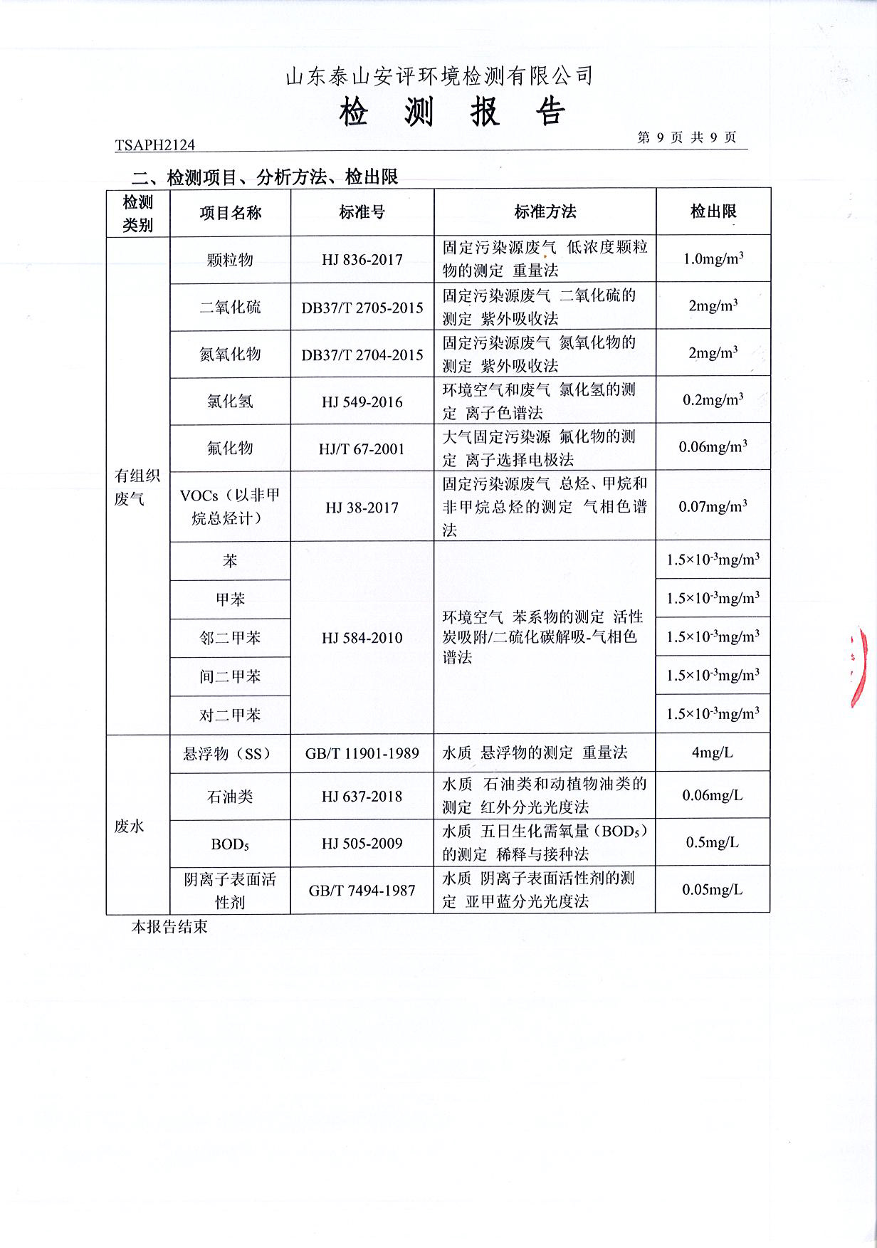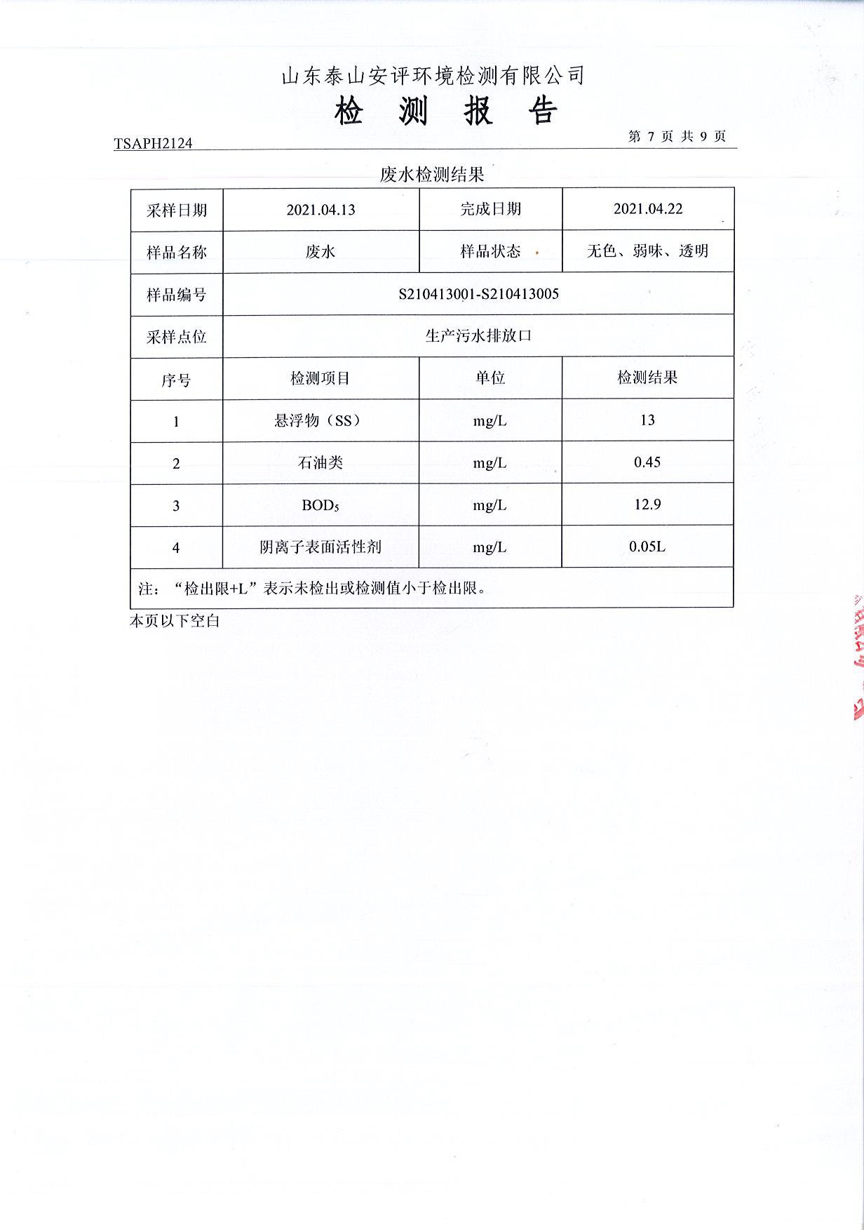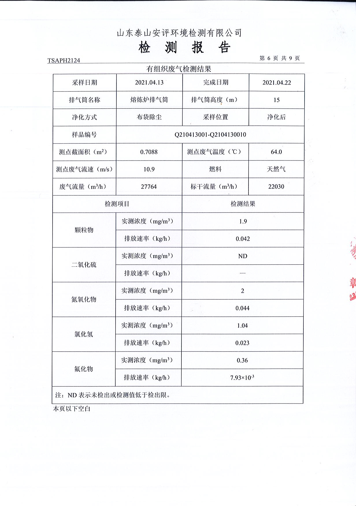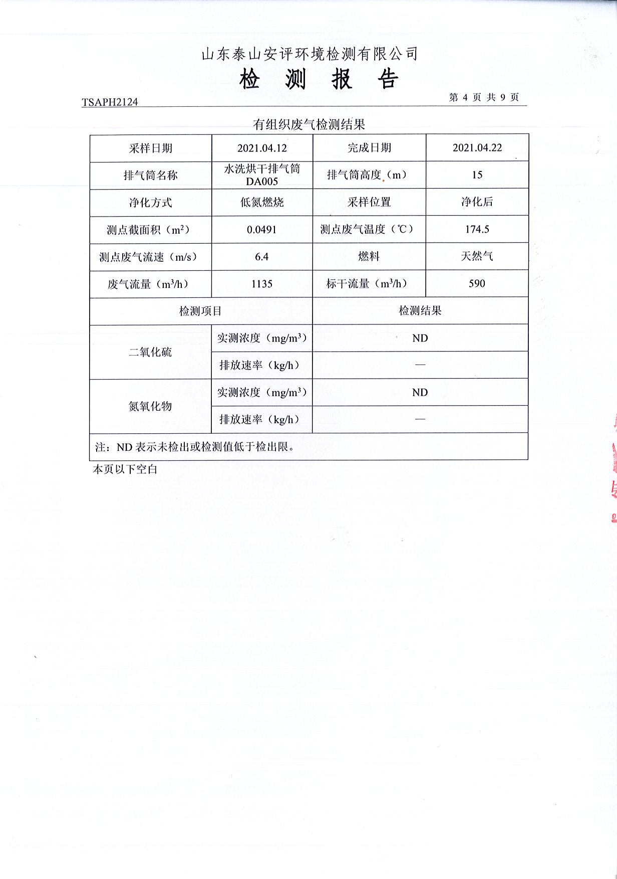 泰安啟程車輪制造有限公司2021年4月份環(huán)境污染物排放檢測報告