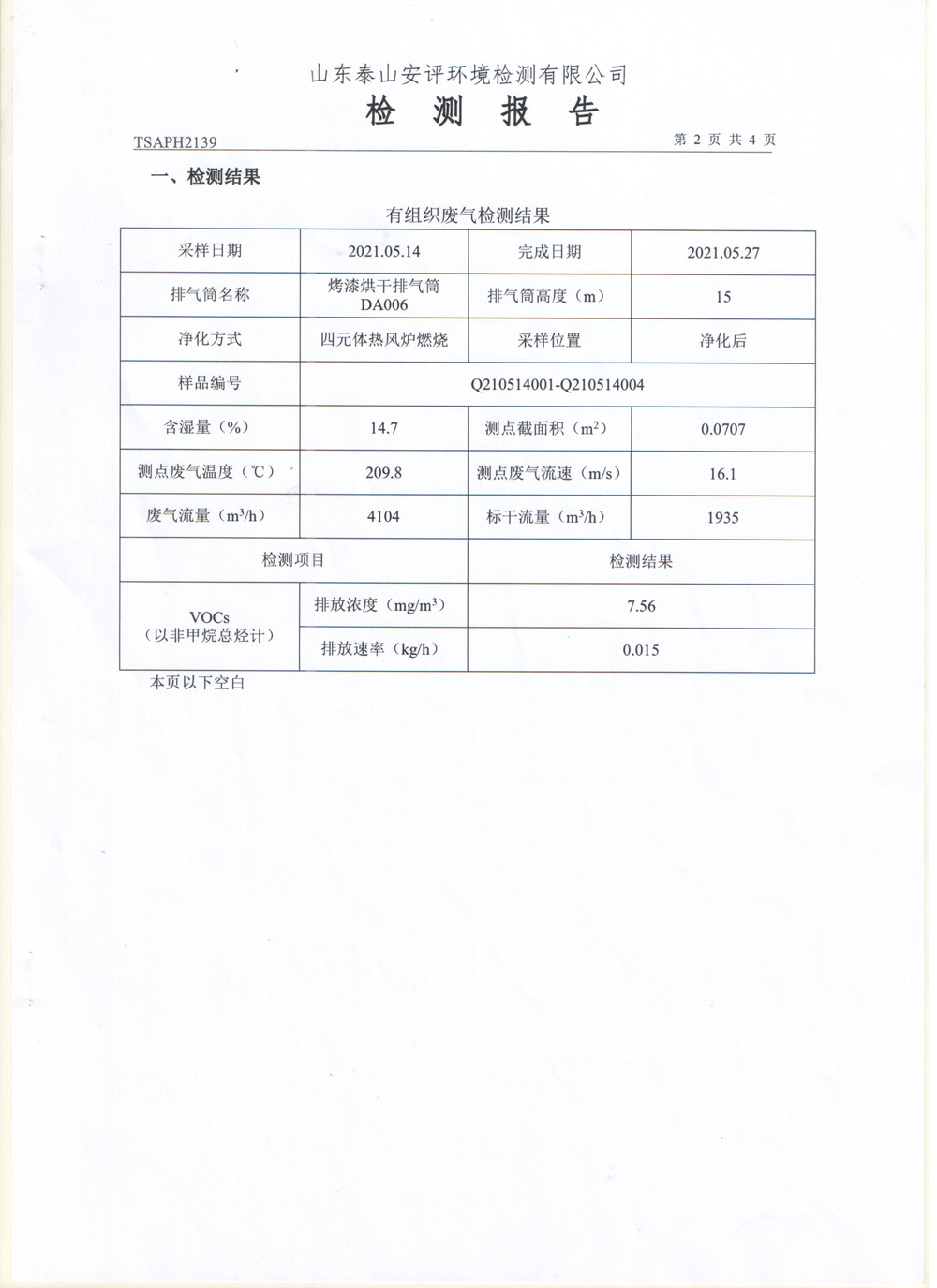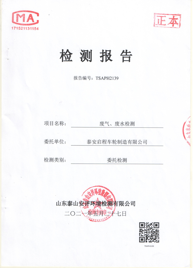泰安啟程車輪制造有限公司2021年5月份環(huán)境污染物排放檢測報(bào)告