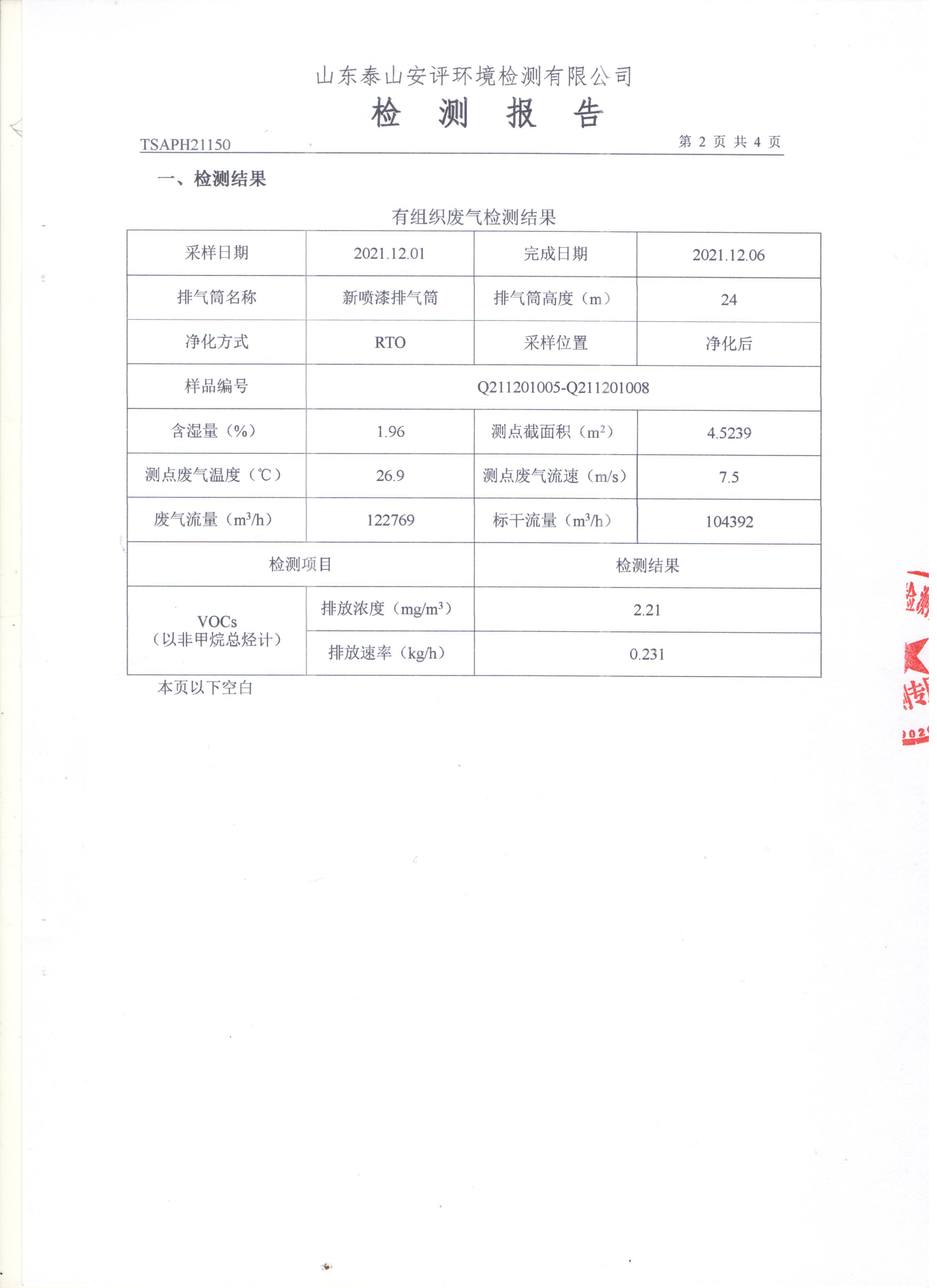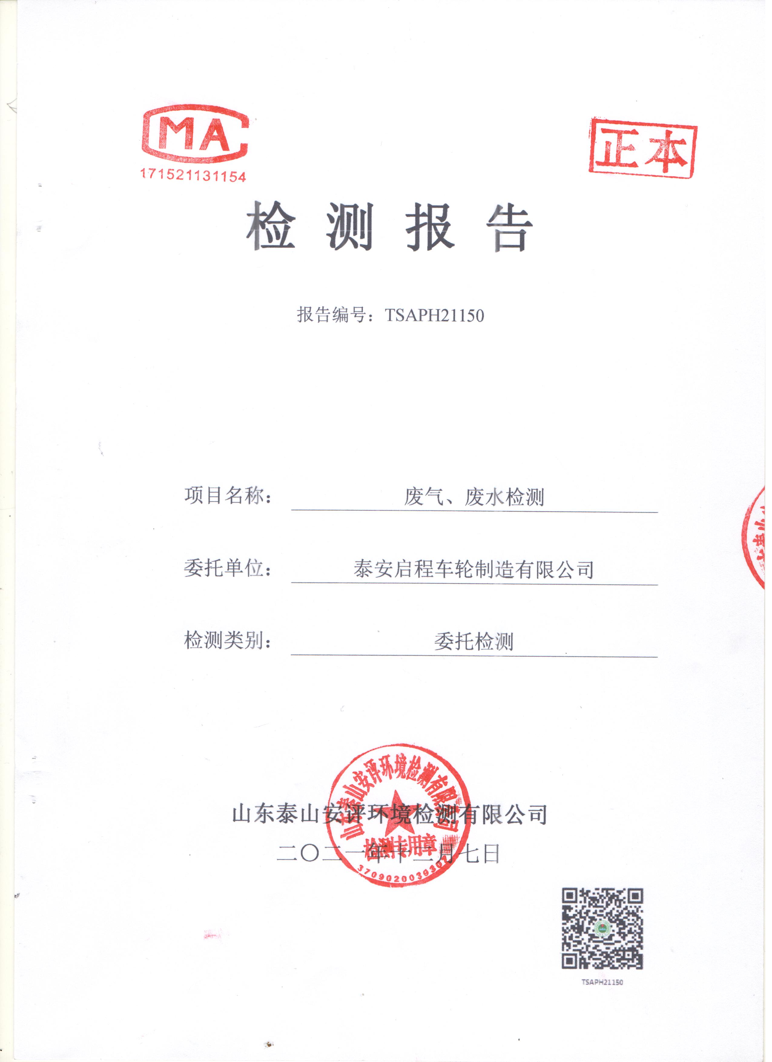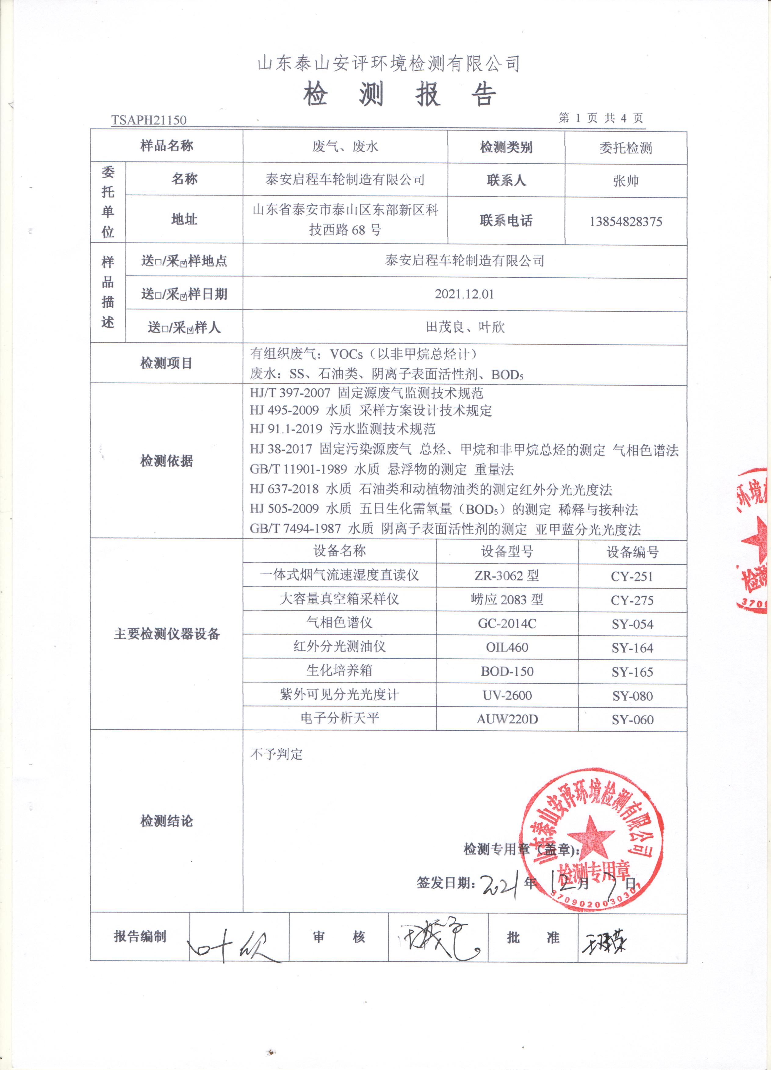 泰安啟程車(chē)輪制造有限公司2021年12月份環(huán)境污染物排放檢測(cè)報(bào)告