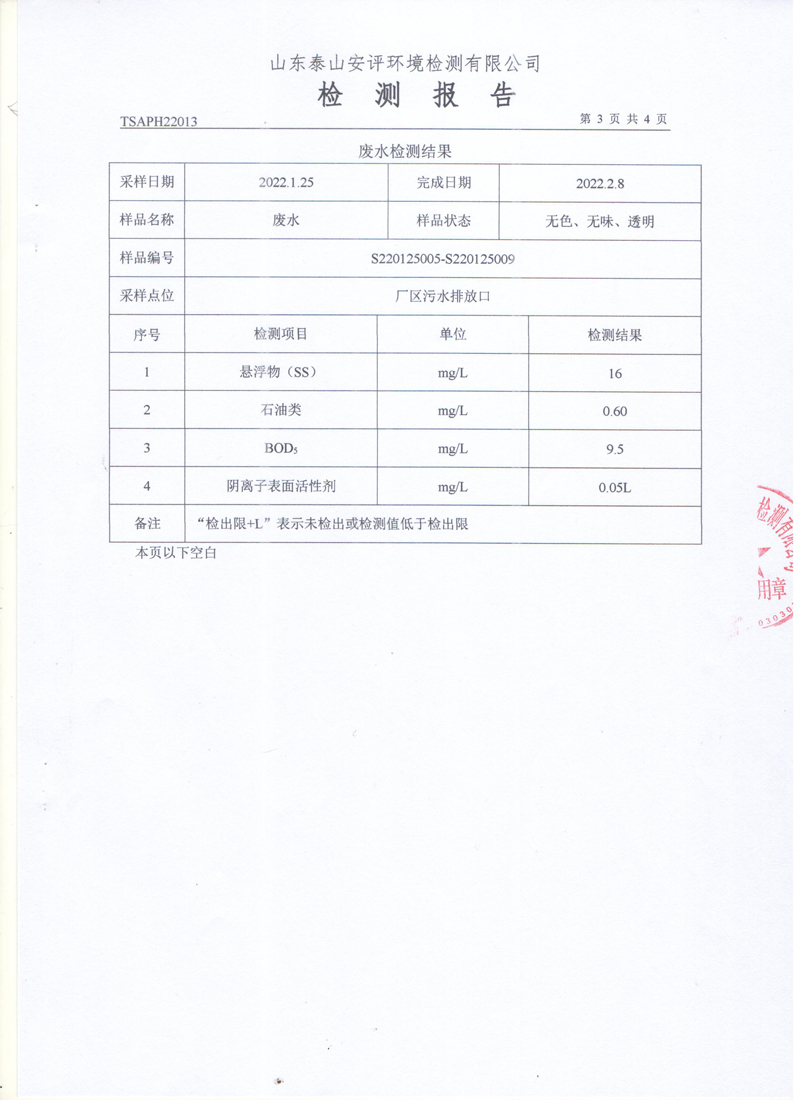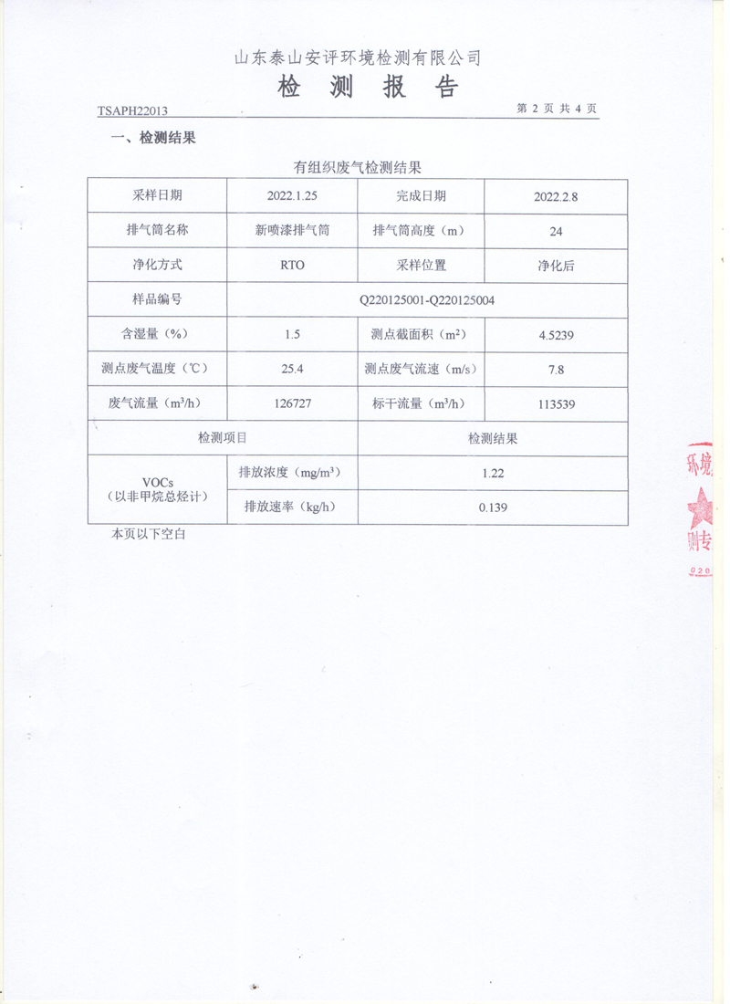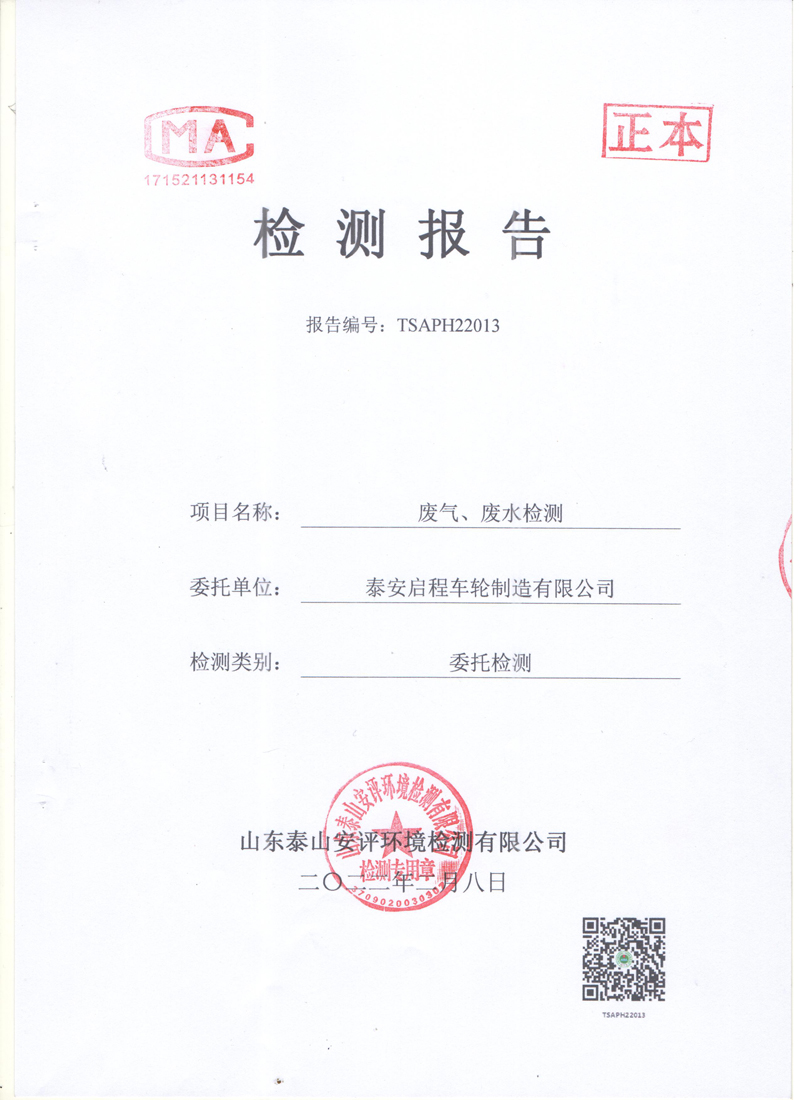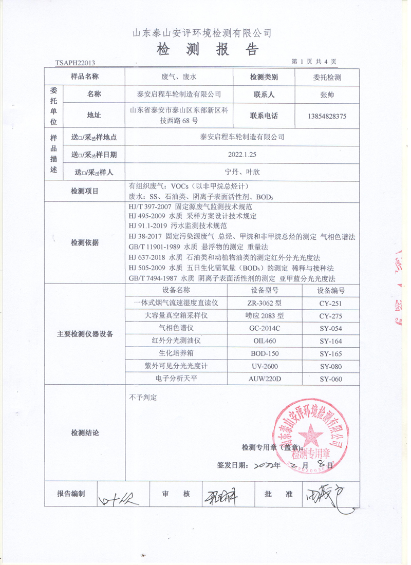 泰安啟程車輪制造有限公司2022年1月份環(huán)境污染物排放檢測報告