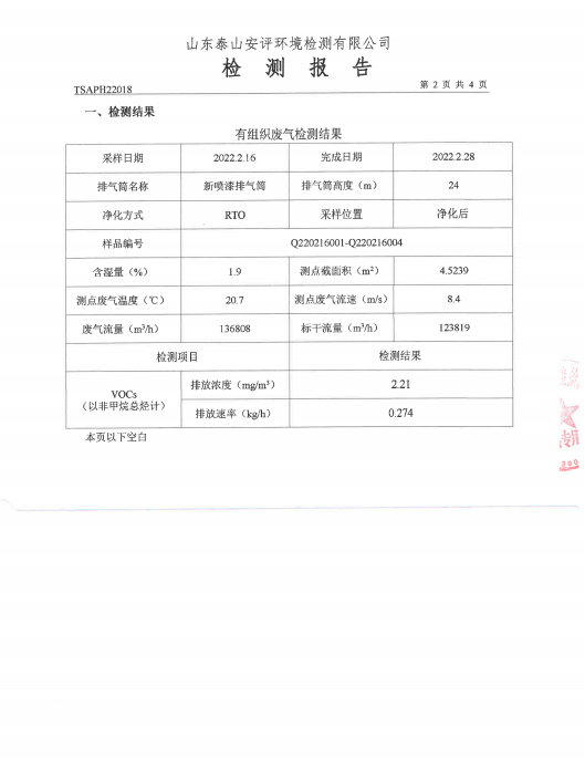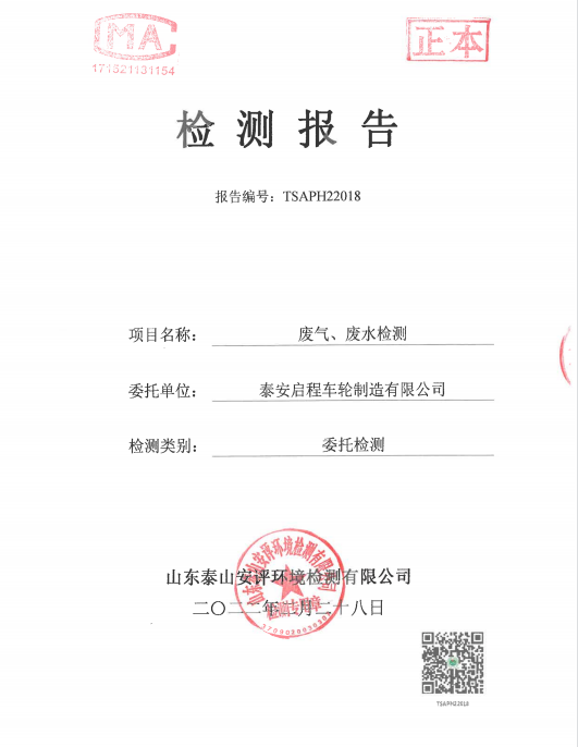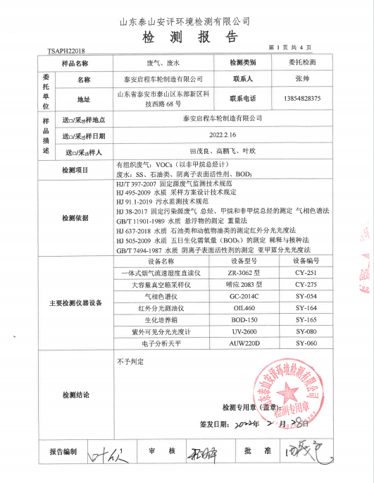 泰安啟程車(chē)輪制造有限公司2022年2月份環(huán)境污染物排放檢測(cè)報(bào)告