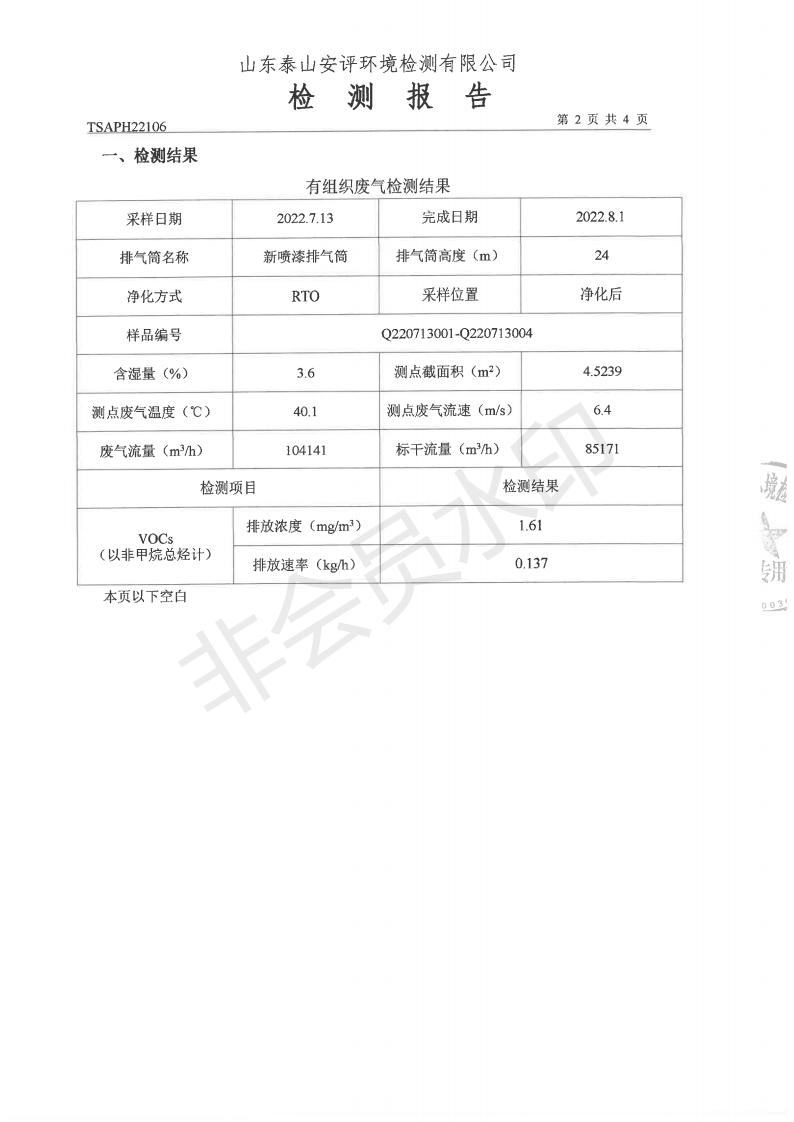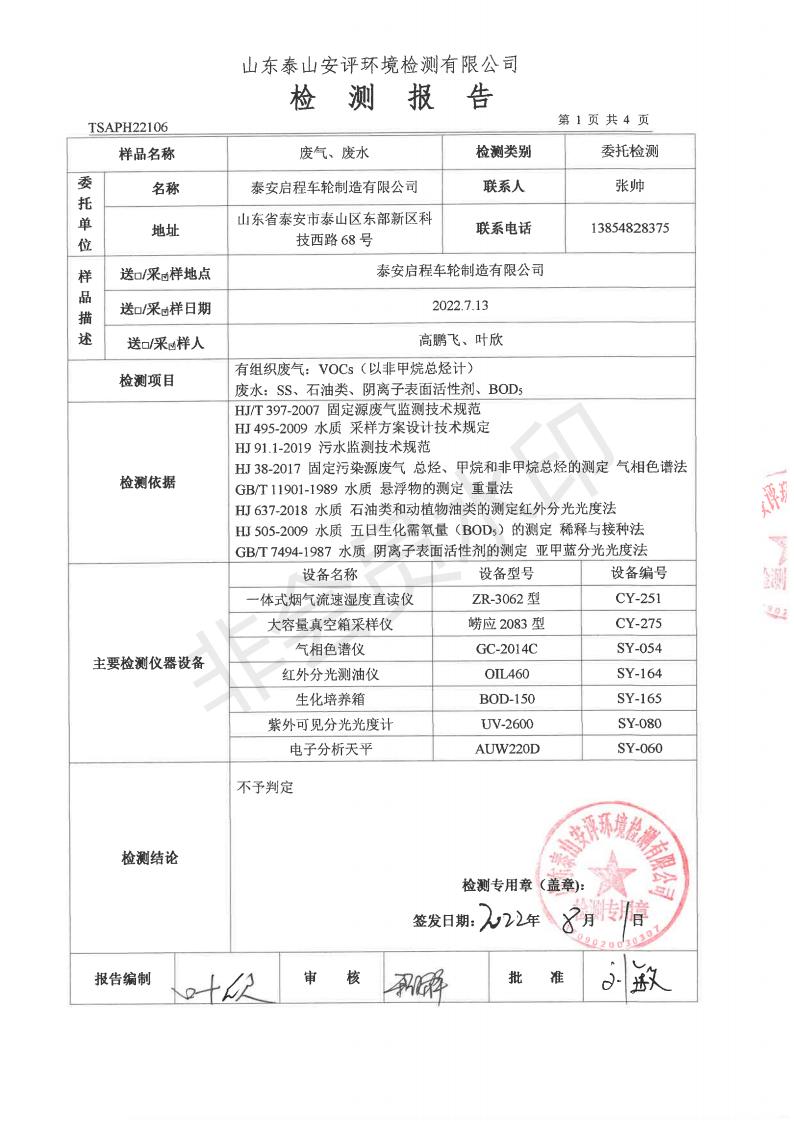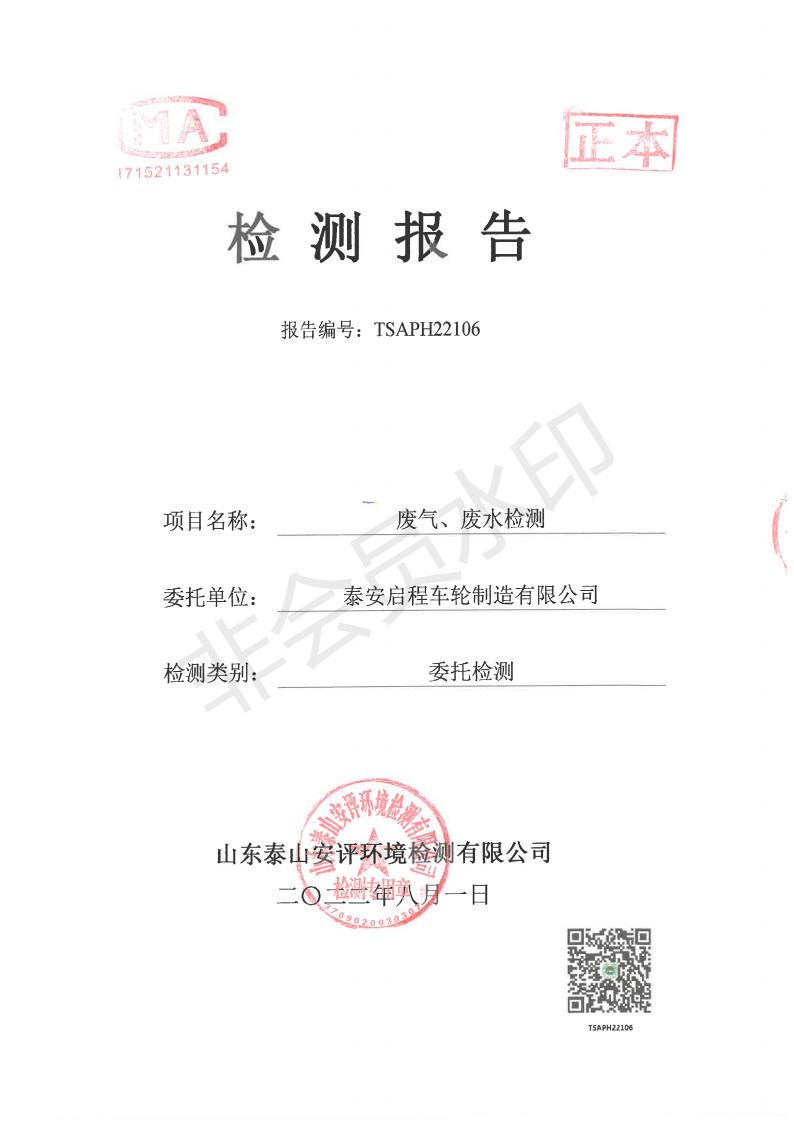 泰安啟程車輪制造有限公司2022年7月份環(huán)境污染物排放檢測報告