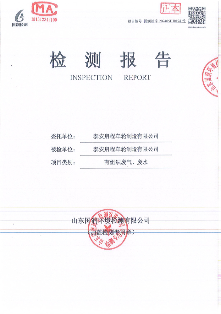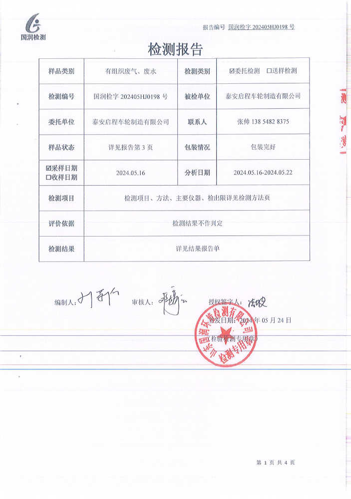 泰安啟程車輪制造有限公司2024年5月份環(huán)境污染物排放檢測(cè)報(bào)告