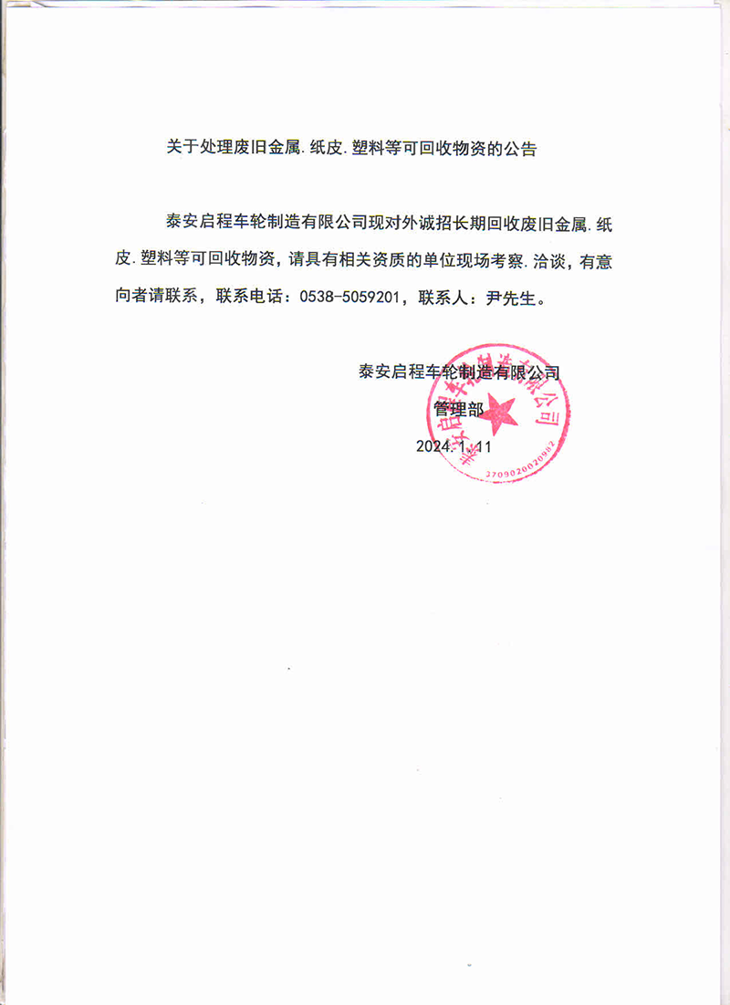 Announcement on the Treatment of Recyclable Materials such as Waste Metal, Paper, Plastic, etc