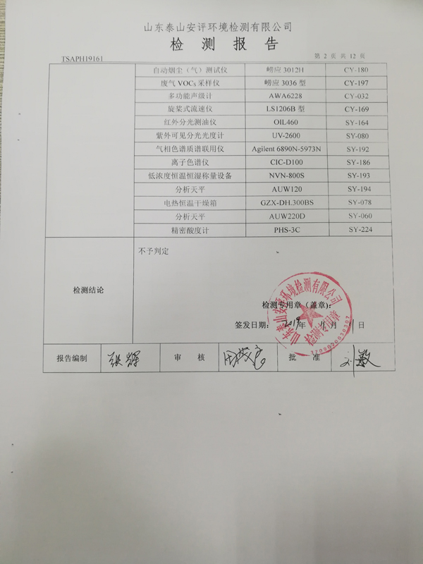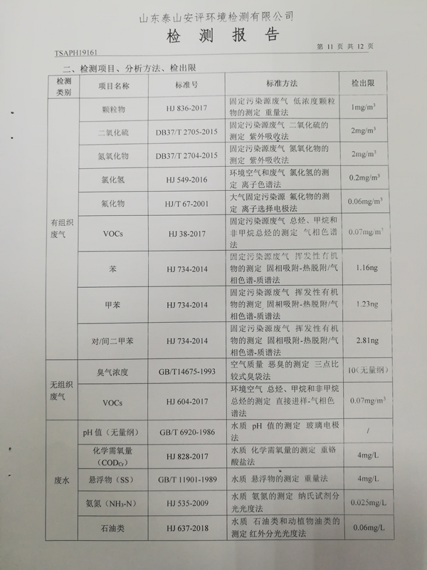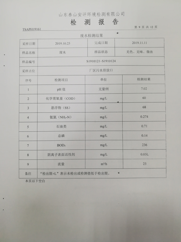 泰安啟程車輪制造有限公司2019年10月份檢測報告