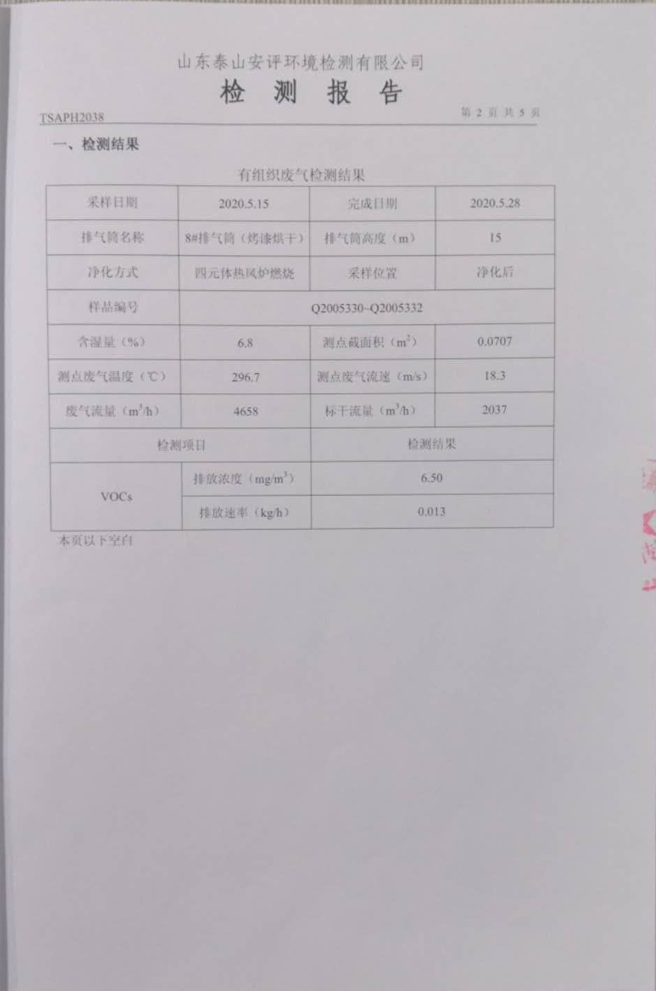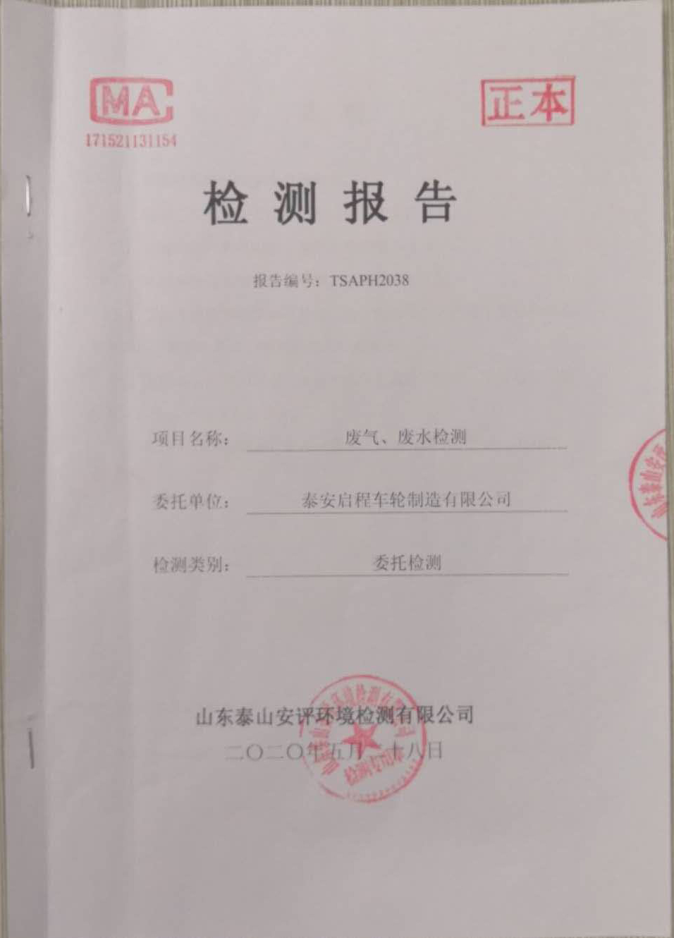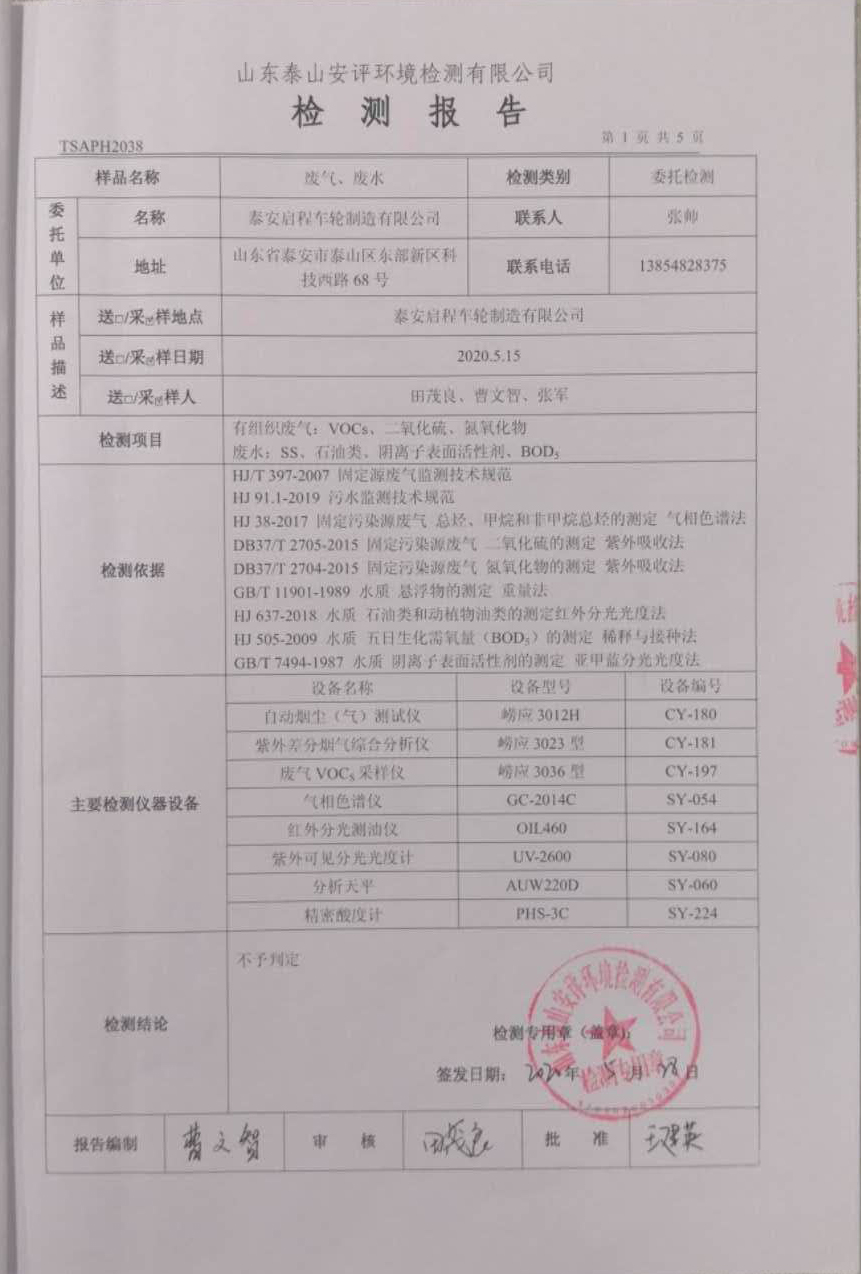 泰安啟程車輪制造有限公司2020年5月份環(huán)境污染物排放檢測(cè)報(bào)告